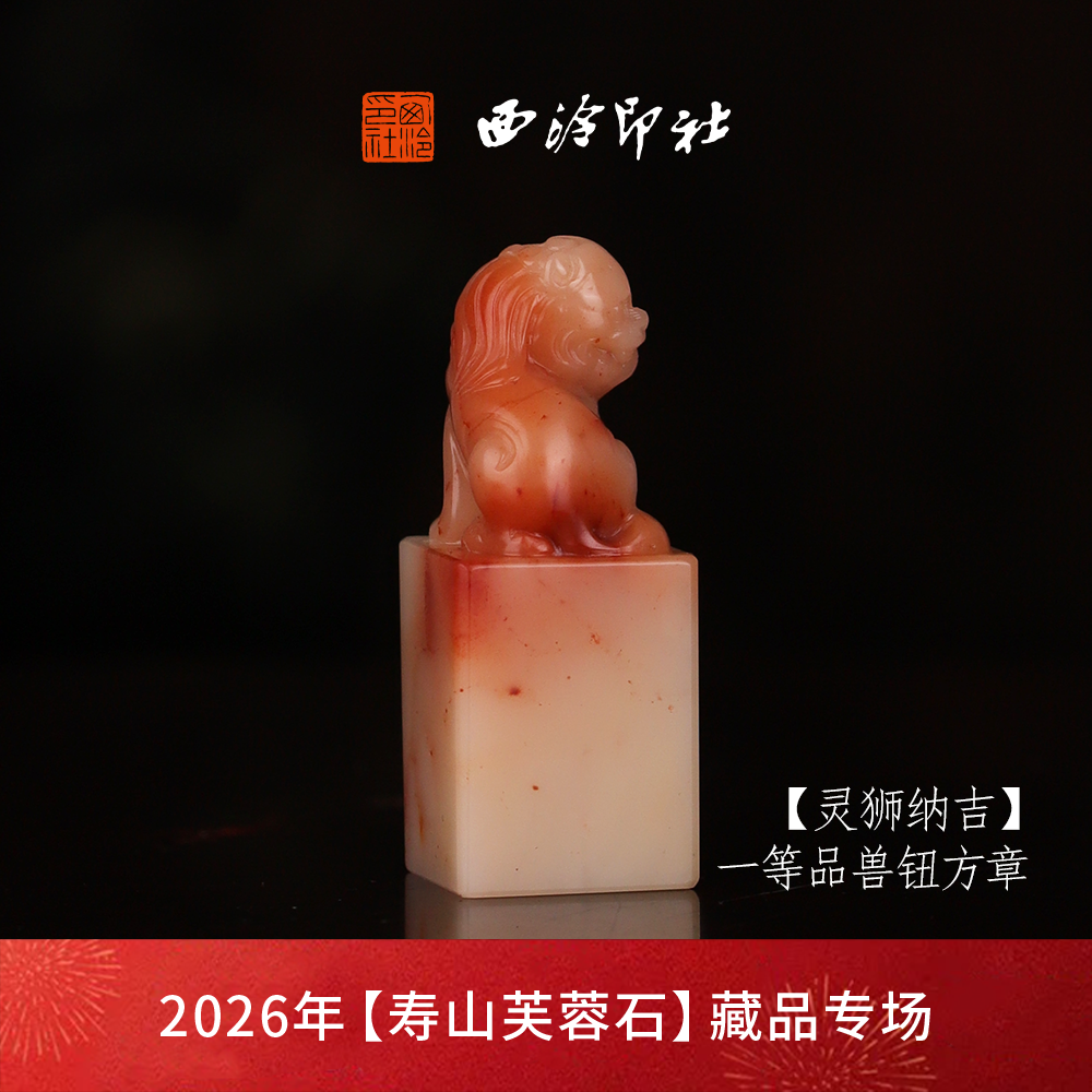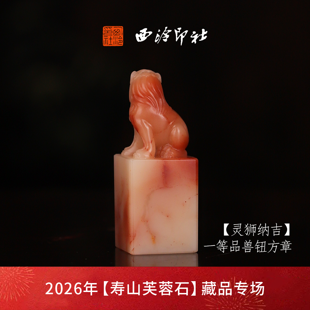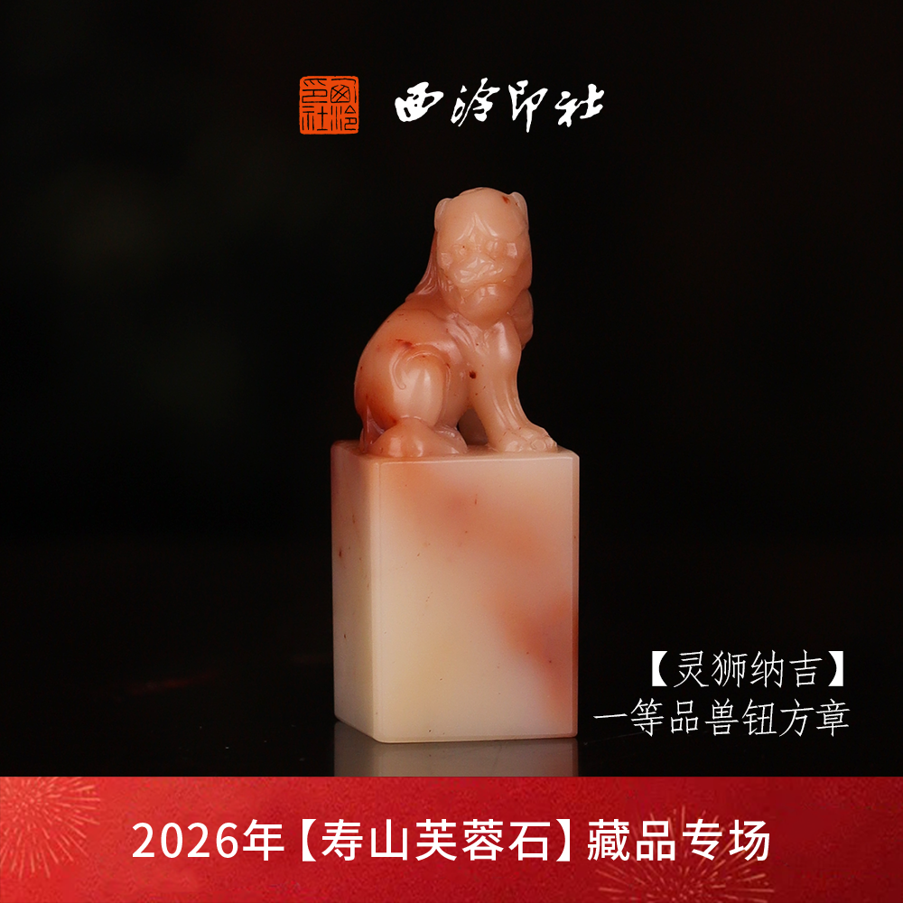 【一等品】西泠印社寿山芙蓉石兽钮方章《灵狮纳吉》高档石材印章书法国画手工篆刻玉石方章定制落款孤品章