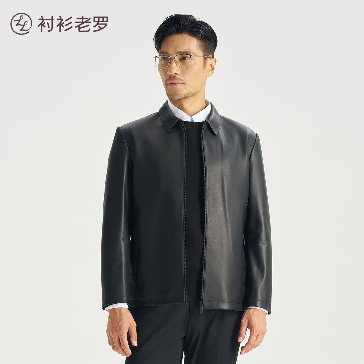 衬衫老罗【门店同款】羊皮革翻领皮衣时尚帅气拉链外套247X0L501N