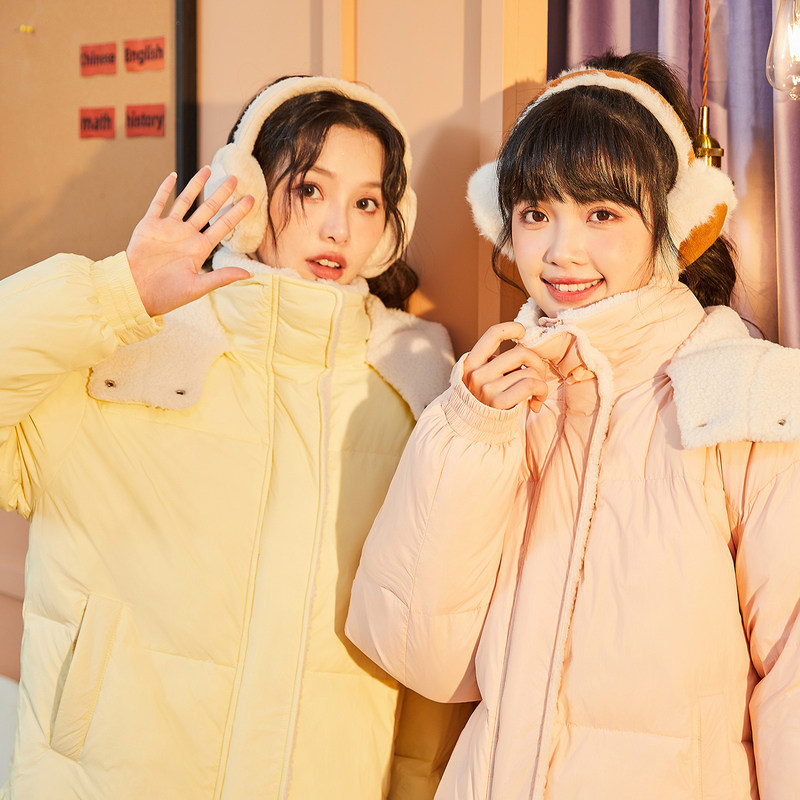 小海鸥收腰短款大毛领冬季新款粉色羽绒棉服女2025冬装棉袄厚外套