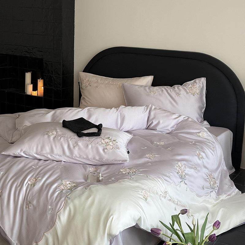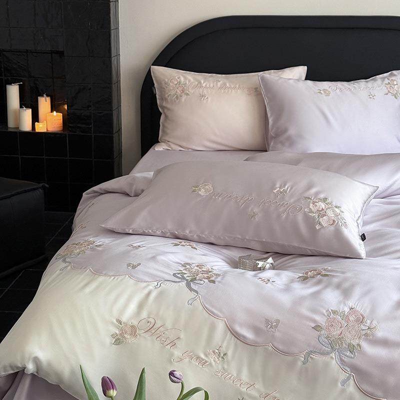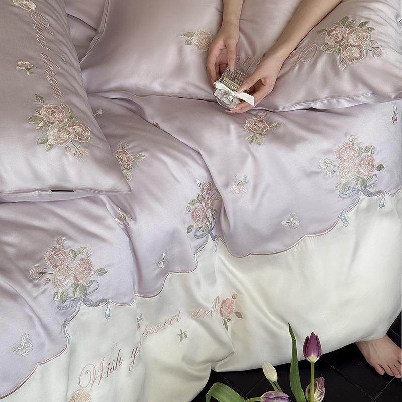 法式少女心兰精天丝绣花三四件套1.8m春夏季凉感床单被套床笠床品