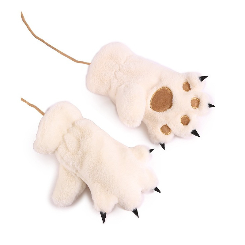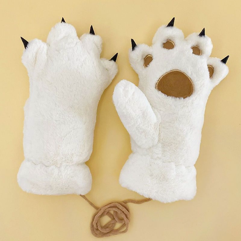 冬季猫爪手套可爱女孩加绒卡通熊掌冬天保暖柔软舒适连指黑色白色