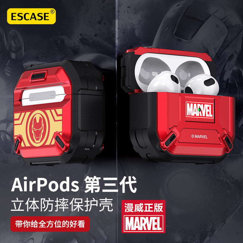 2021漫威苹果airpodsPro保护壳钢铁侠防摔airpods3耳机套2二三代创意个性1机械硬壳男雷神无线蓝牙硅胶盒适用