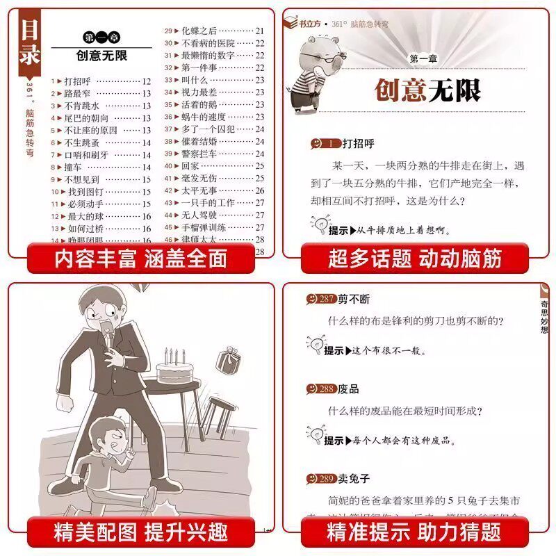 认准正版】小学生361°脑筋急转弯大全儿童版幽默笑话谜语大全小故事大道理儿童阅读课外书益智动脑智力开发3-8岁幼儿园睡前故事书