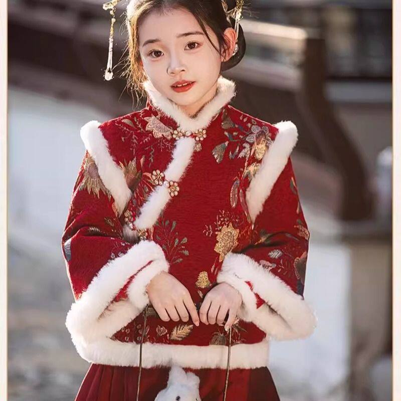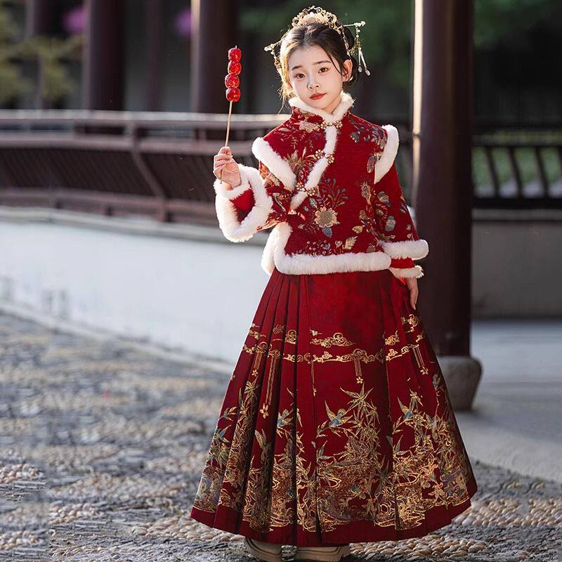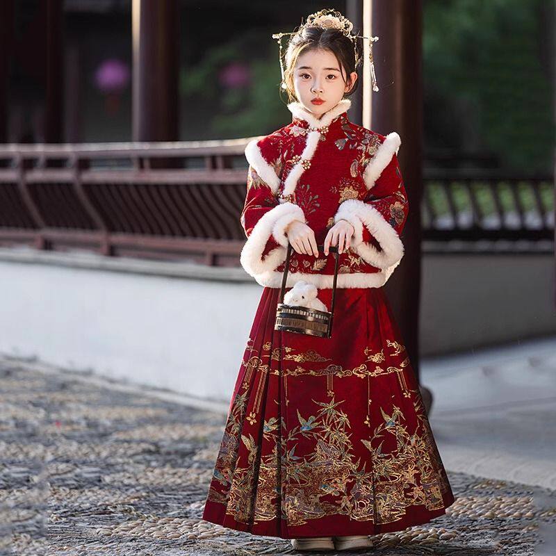 女童拜年服2026新款儿童汉服马面裙过年衣服新年唐装加厚冬上衣