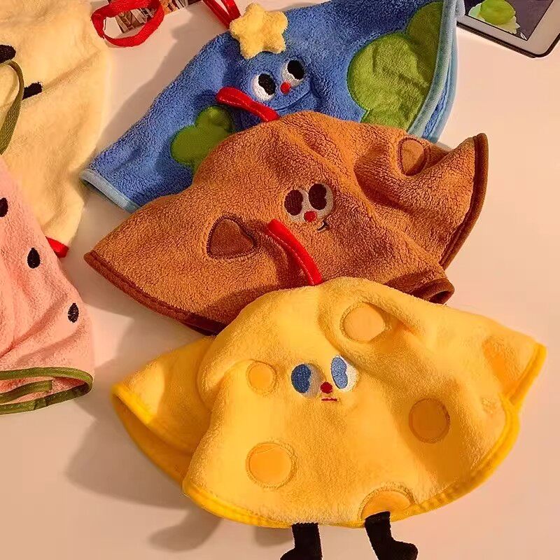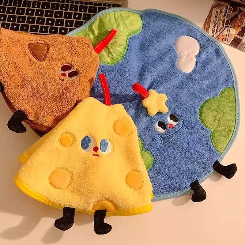 速干加厚吸水卫生间厨房儿童抹布挂式手帕毛巾可爱卡通手巾珊瑚