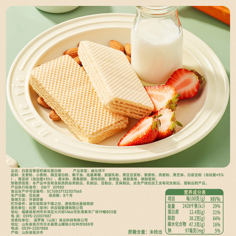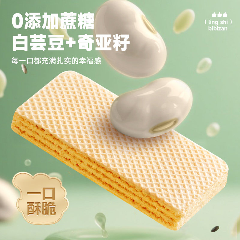 比比赞白芸豆奇亚籽威化蛋白棒饼干早餐零食整箱批发花生夹心解馋