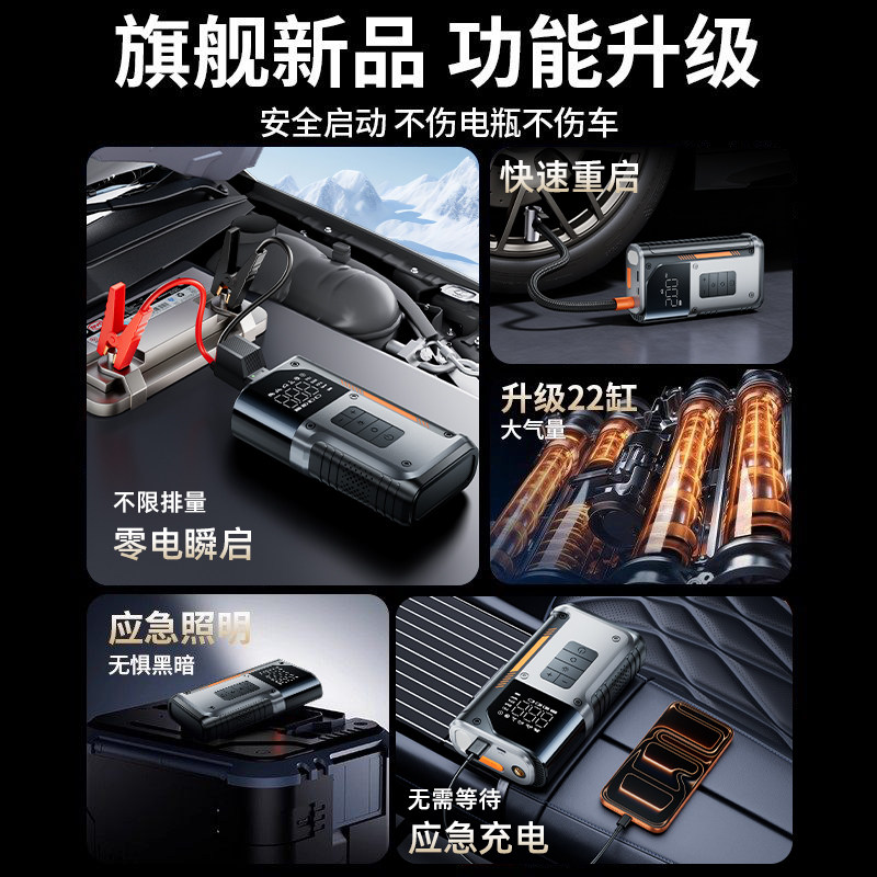 小能人汽车应急启动电源充气泵一体机车载打气电瓶紧急搭电宝神器
