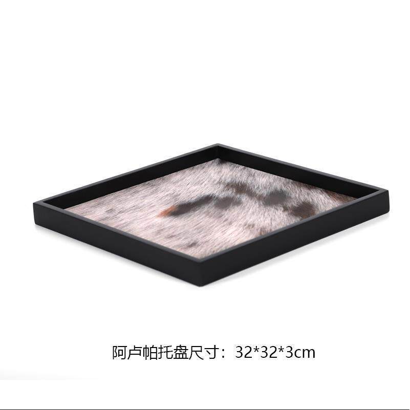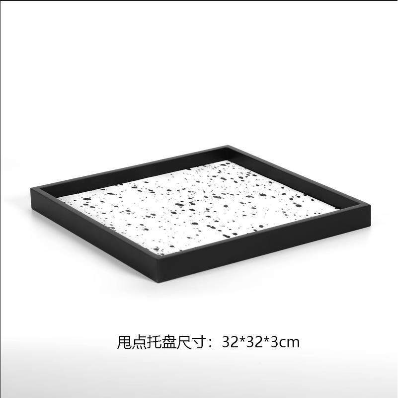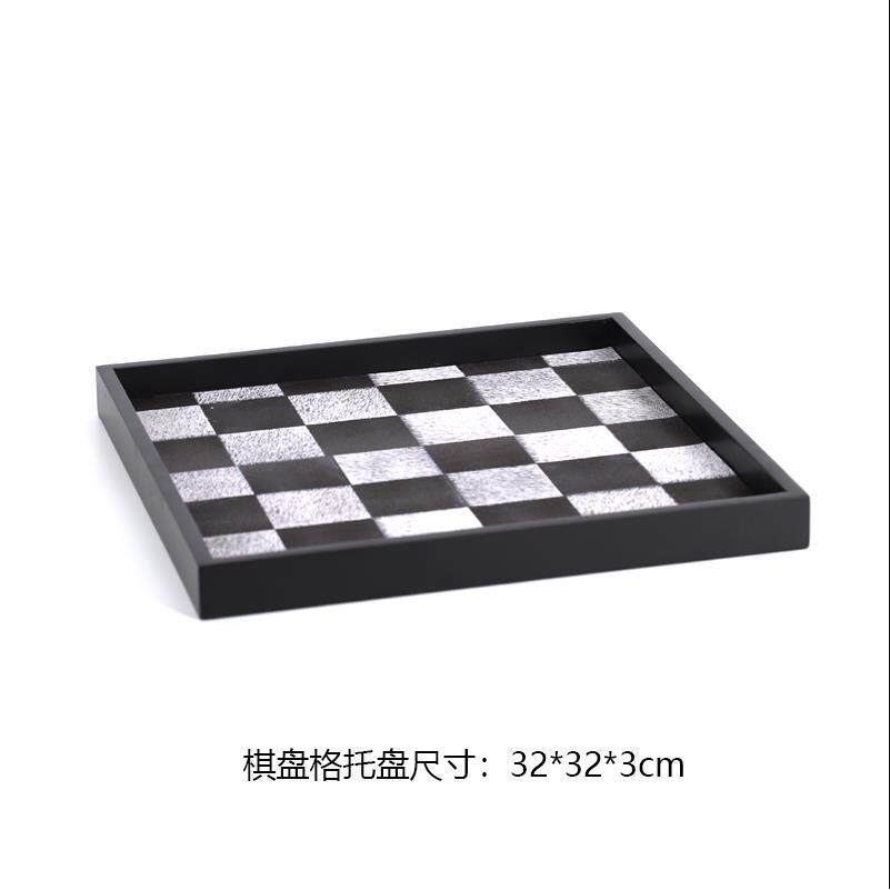 现代简创意黑白棋盘格托盘样板房酒具装饰托盘皮革托盘样板间托盘