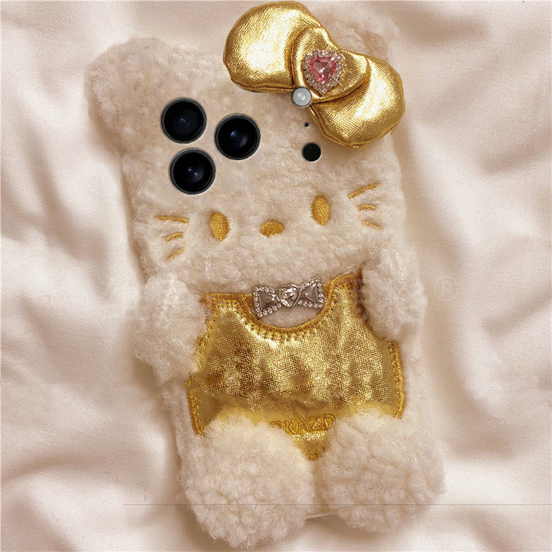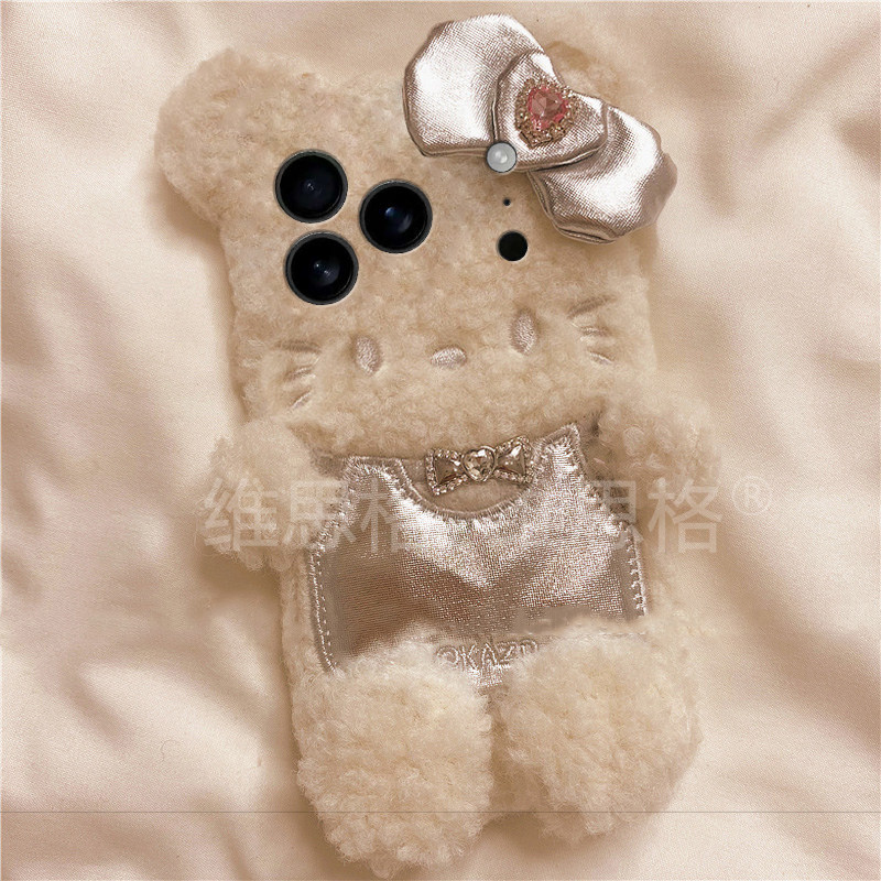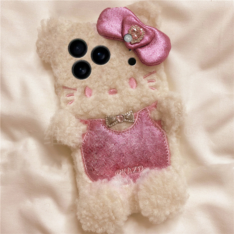 背带裤蝴蝶结kt猫适用苹果17promax手机壳华为pura80荣耀400pro小米15呆萌vivos30毛绒opporeno14秋冬x300软p