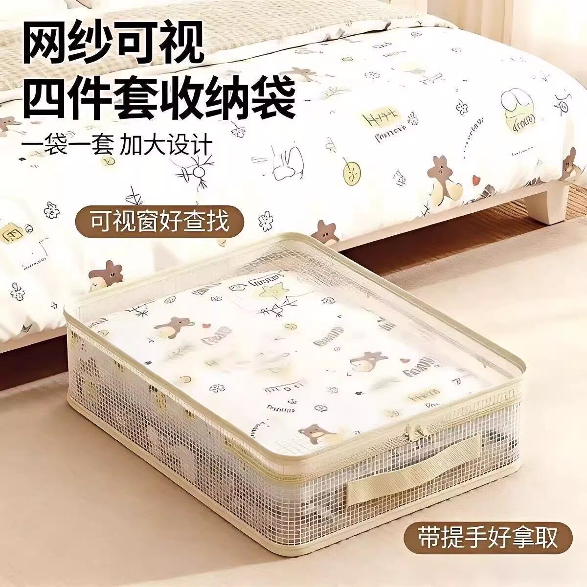 网纱四件套收纳袋家用大容量衣服防尘储物整理盒可视棉被子防尘袋