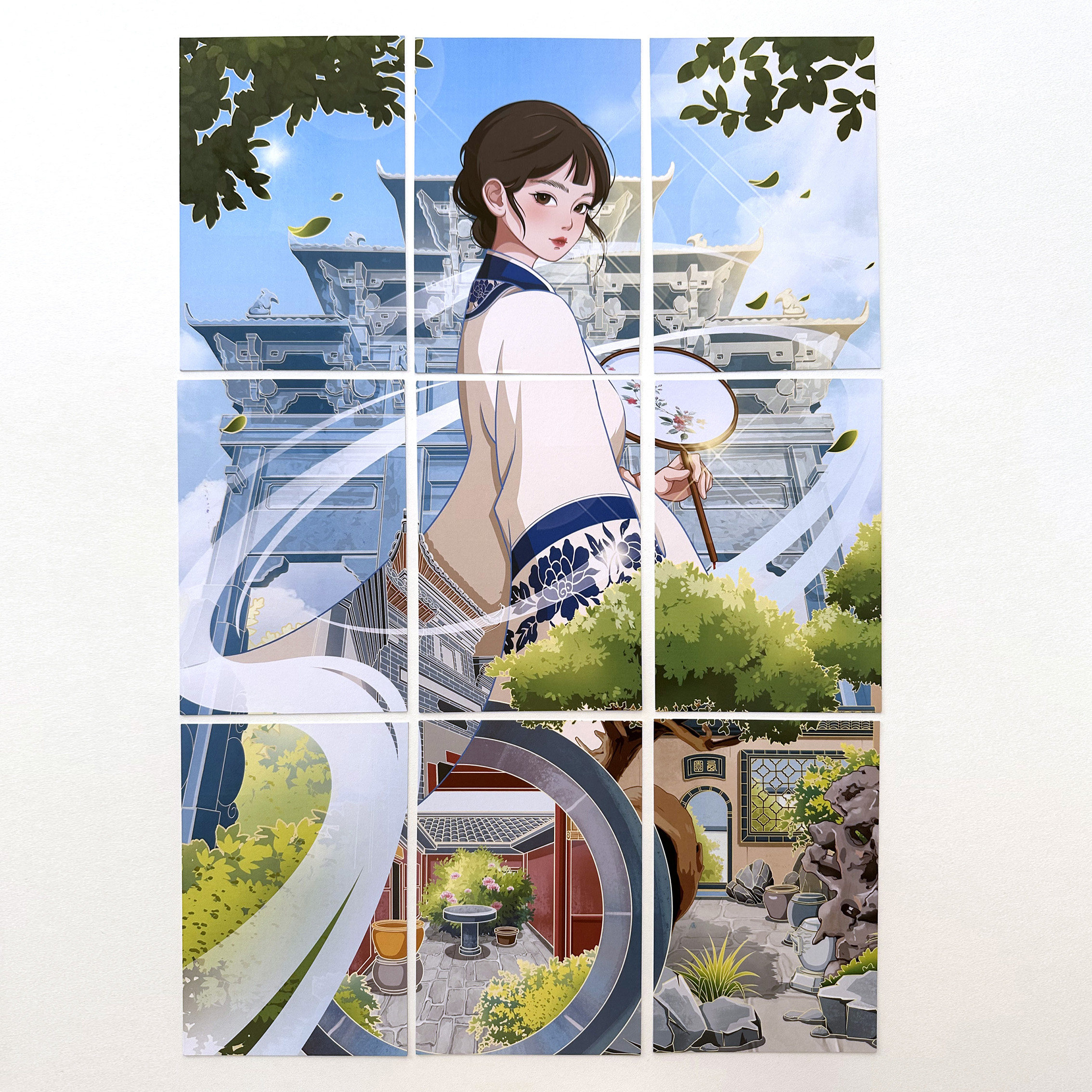 安徽西递古镇九宫格拼图印章盖章集章卡套盒纪念明信片文创收藏