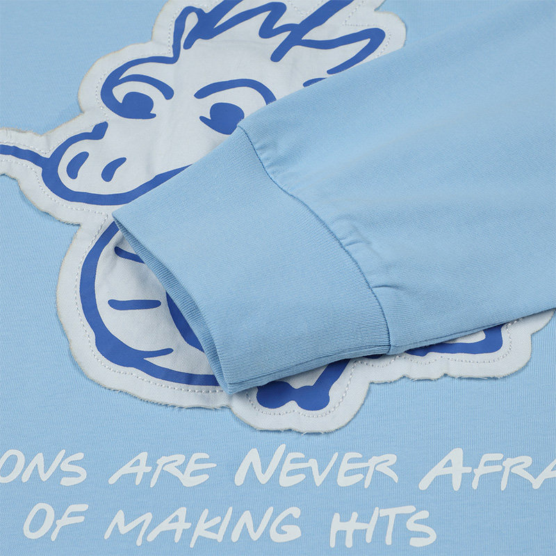 【DNA官方】2025春夏卡通龙贴布长袖T恤潮流休闲圆领套头纯棉上衣