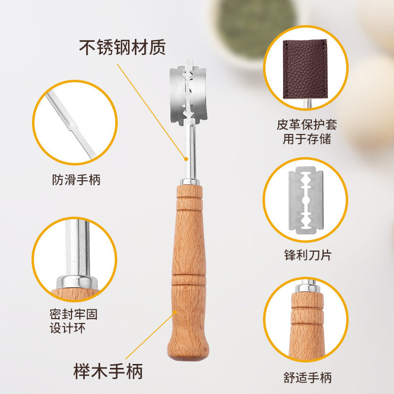 面包刀木柄弧形面包割刀304不锈钢面包修容刀欧式法棍面团分割刀