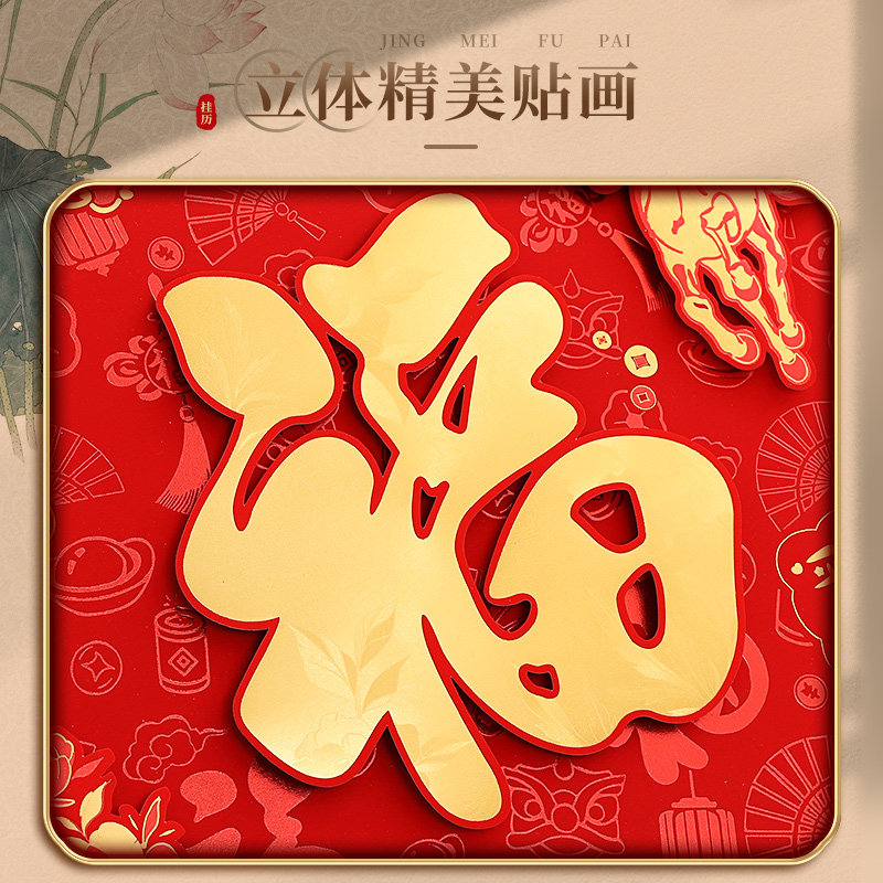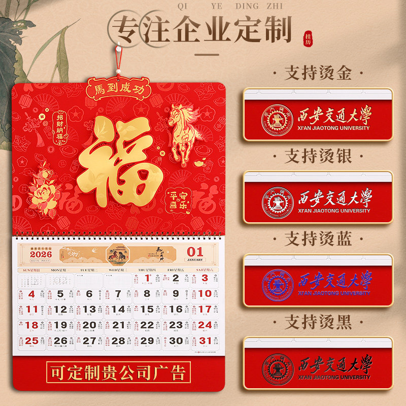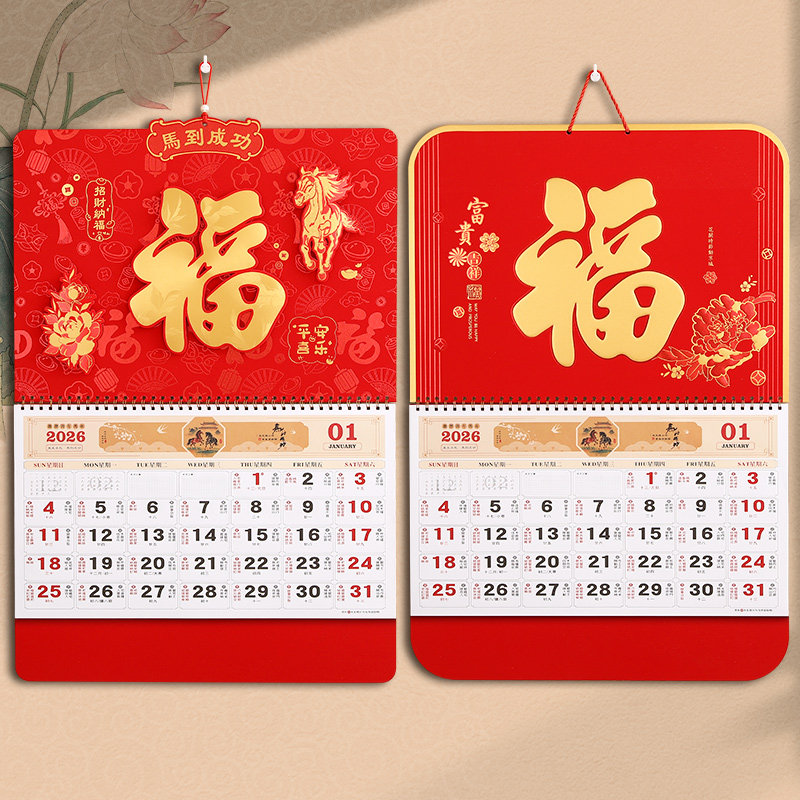 2026年新款大四开立体工艺福牌吊历装饰挂墙马年翻页月历公司广告定制可印logo新年挂历烫金福子手撕日历礼品