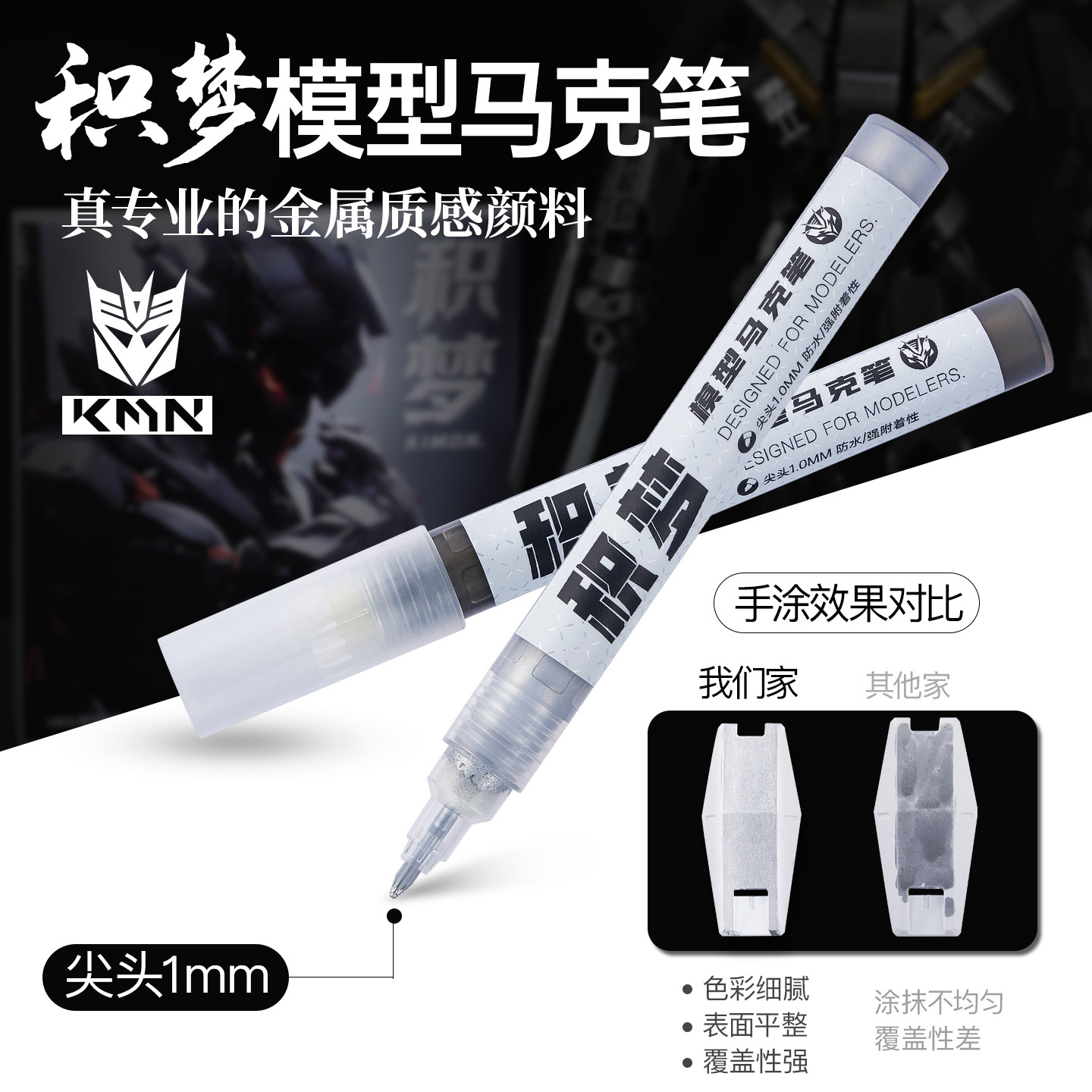 KIMON金属色马克笔高达机甲军事模型DIY涂装上色笔合金骨架金属玩具改色油漆笔手办补色手涂补漆水性模型画笔