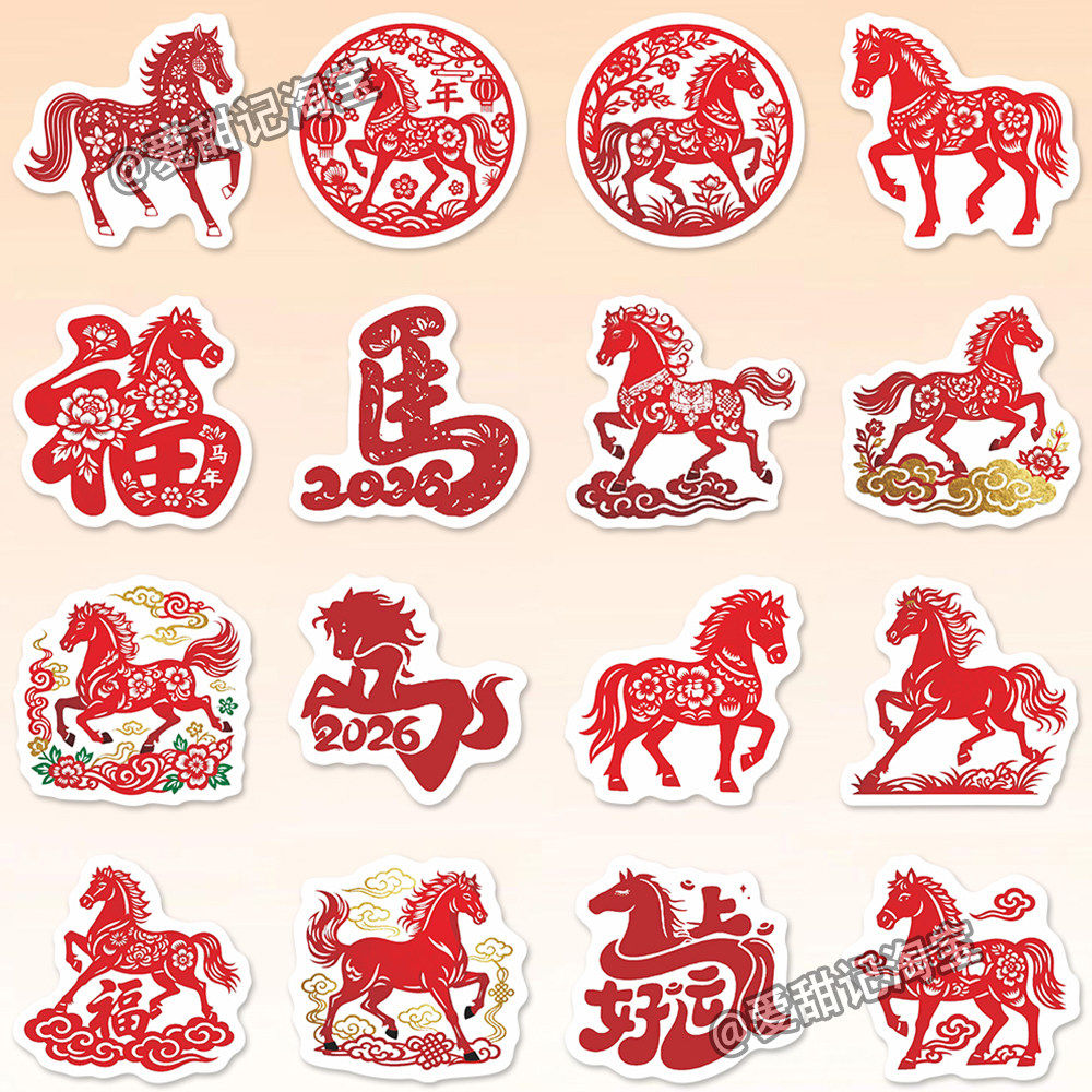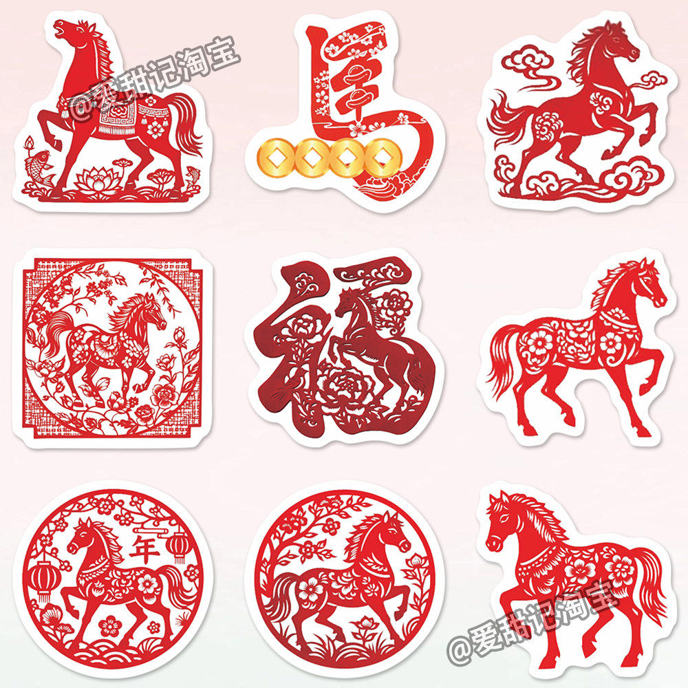 216张马年新年剪纸贴图热门传统国风纪念周边创意小马窗花贴画diy