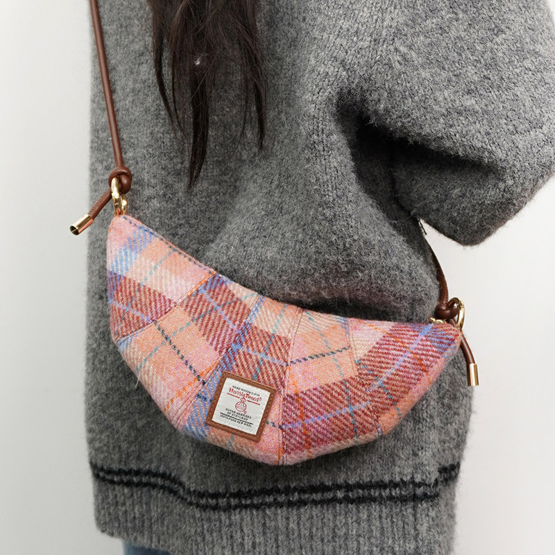 harris tweed哈里斯粗花呢牛角包高级质感饺子包胸包羊角包斜挎包