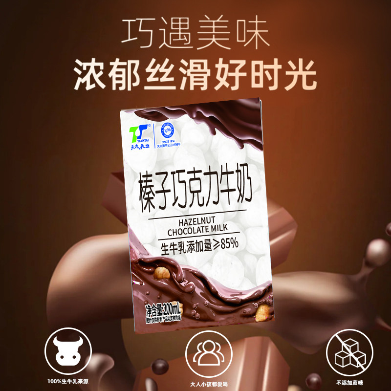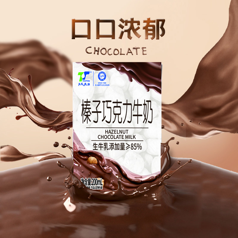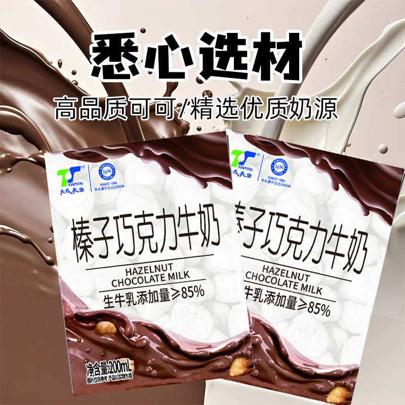 天太榛子巧克力牛奶200ml*20盒整箱正品学生早餐奶牛乳乳业可可
