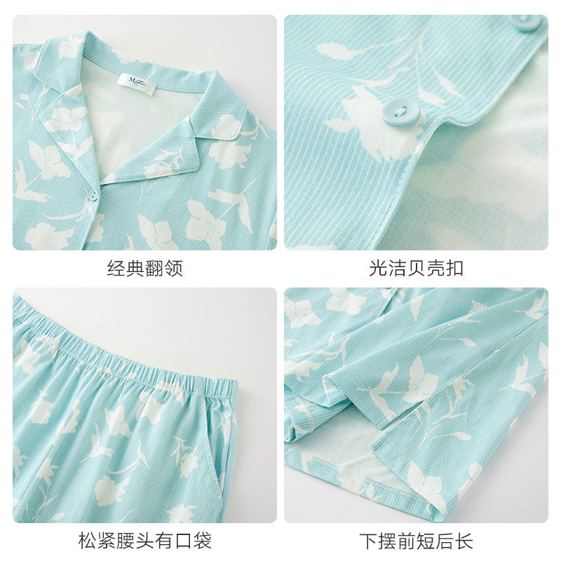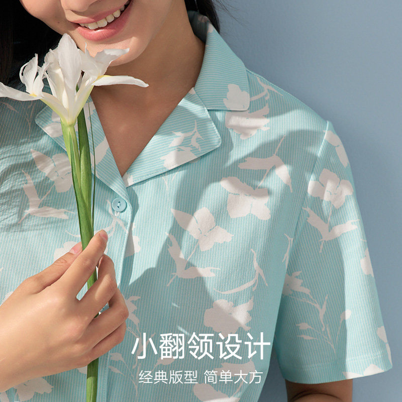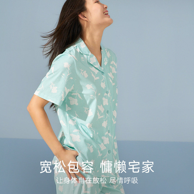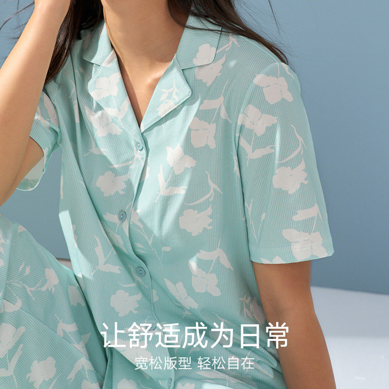 曼妮芬棉质生活纯棉睡衣女短袖长裤套装可外穿家居服