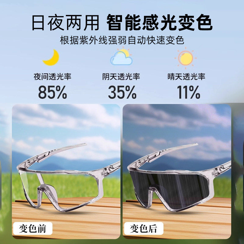 骑行护目镜防风眼镜变色日夜两用骑登山运动跑步感光圆脸飞行员