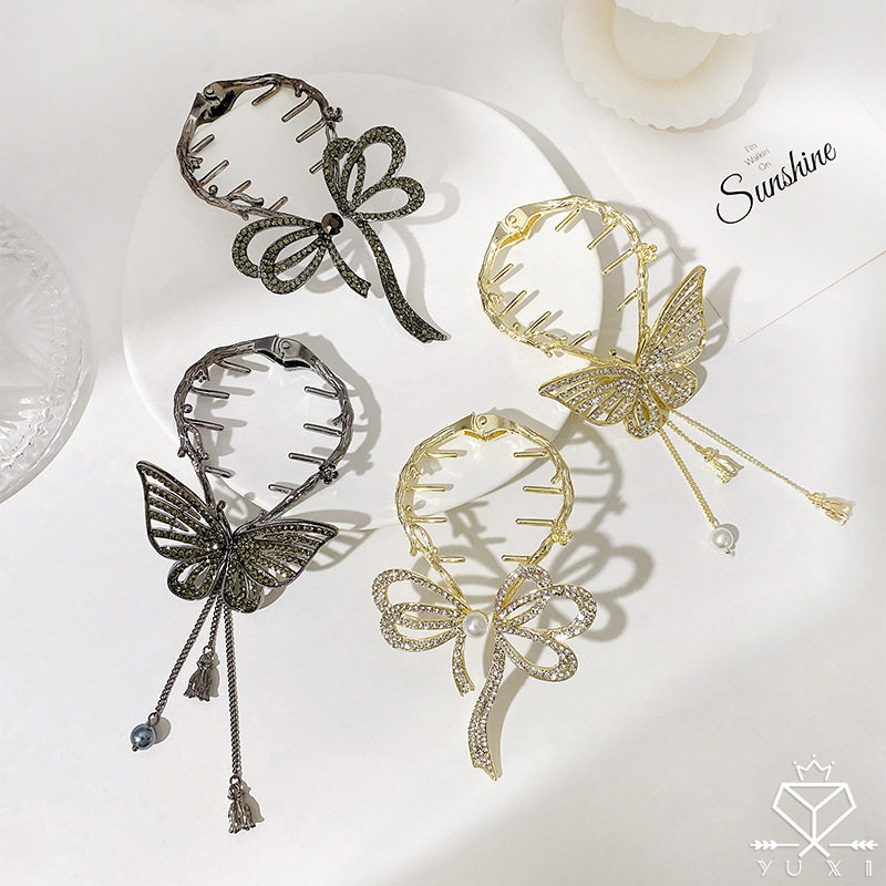 蝴蝶丸子头发饰女高级感2024年秋冬气质头饰后脑勺盘发神器发卡
