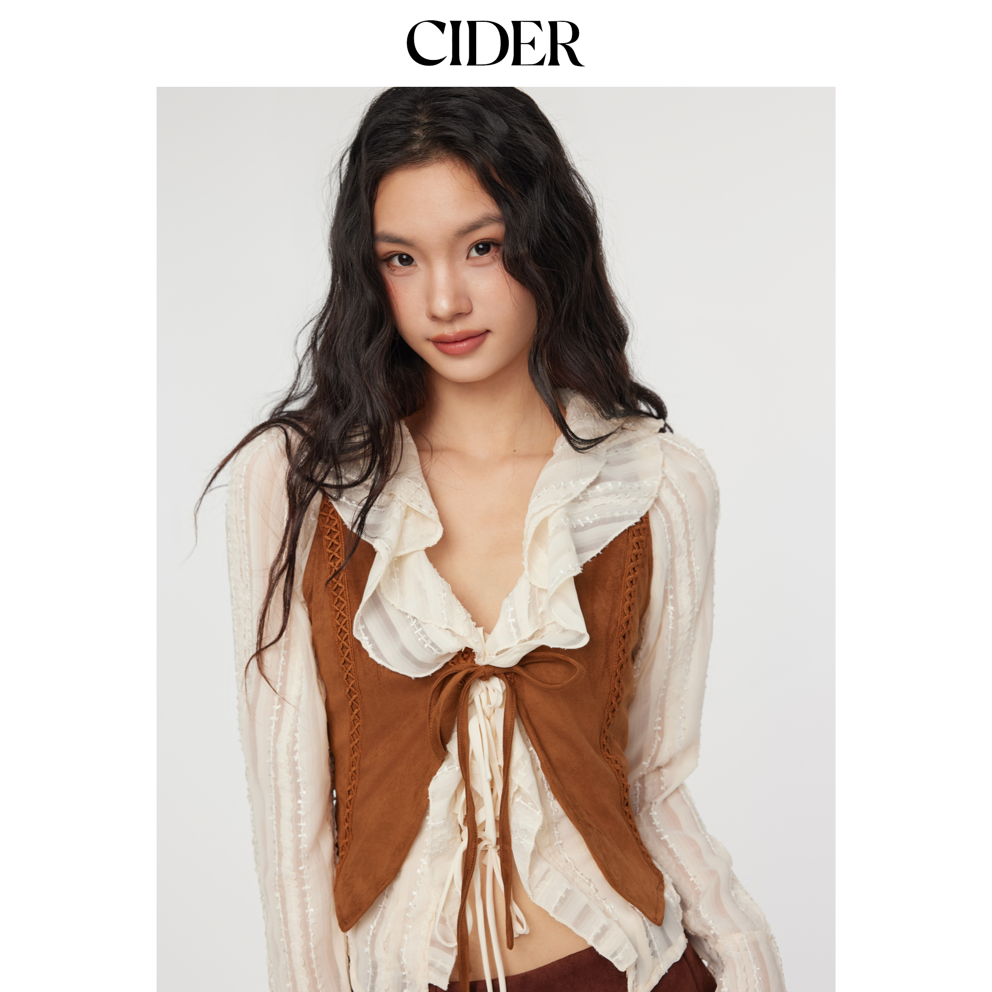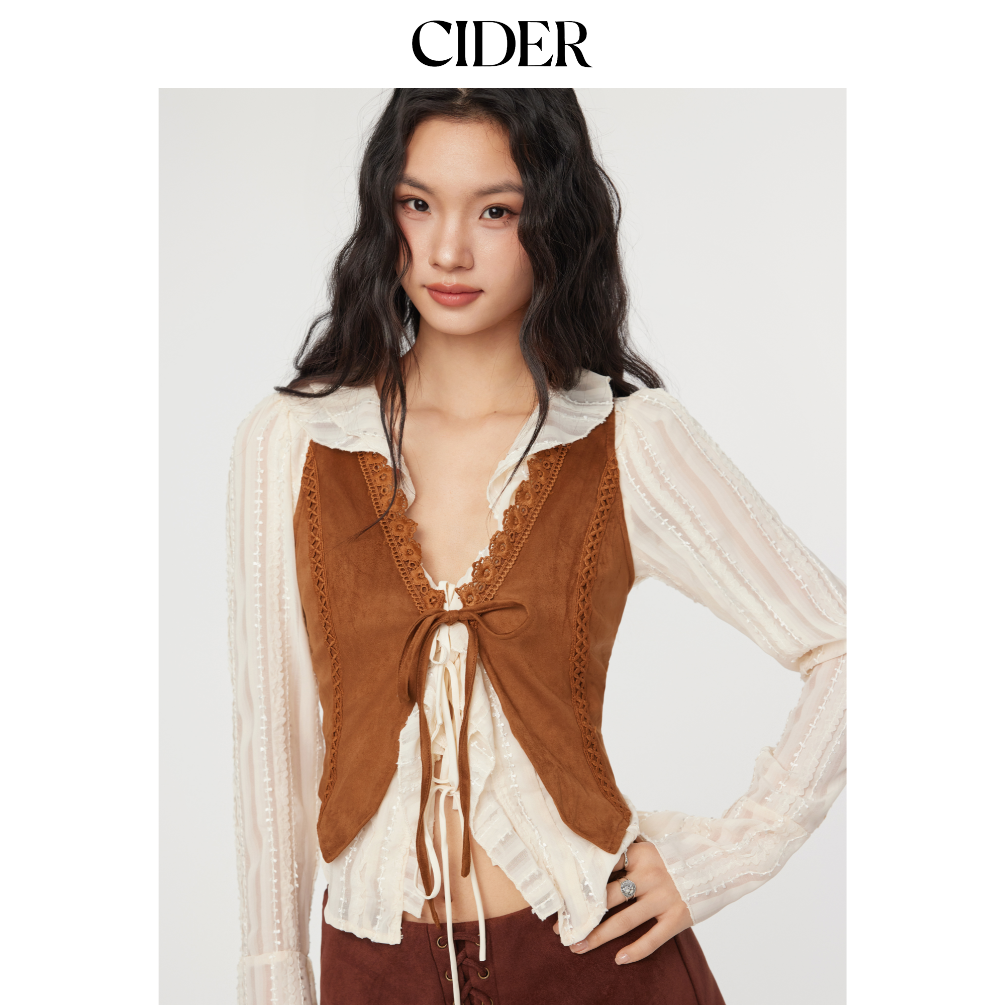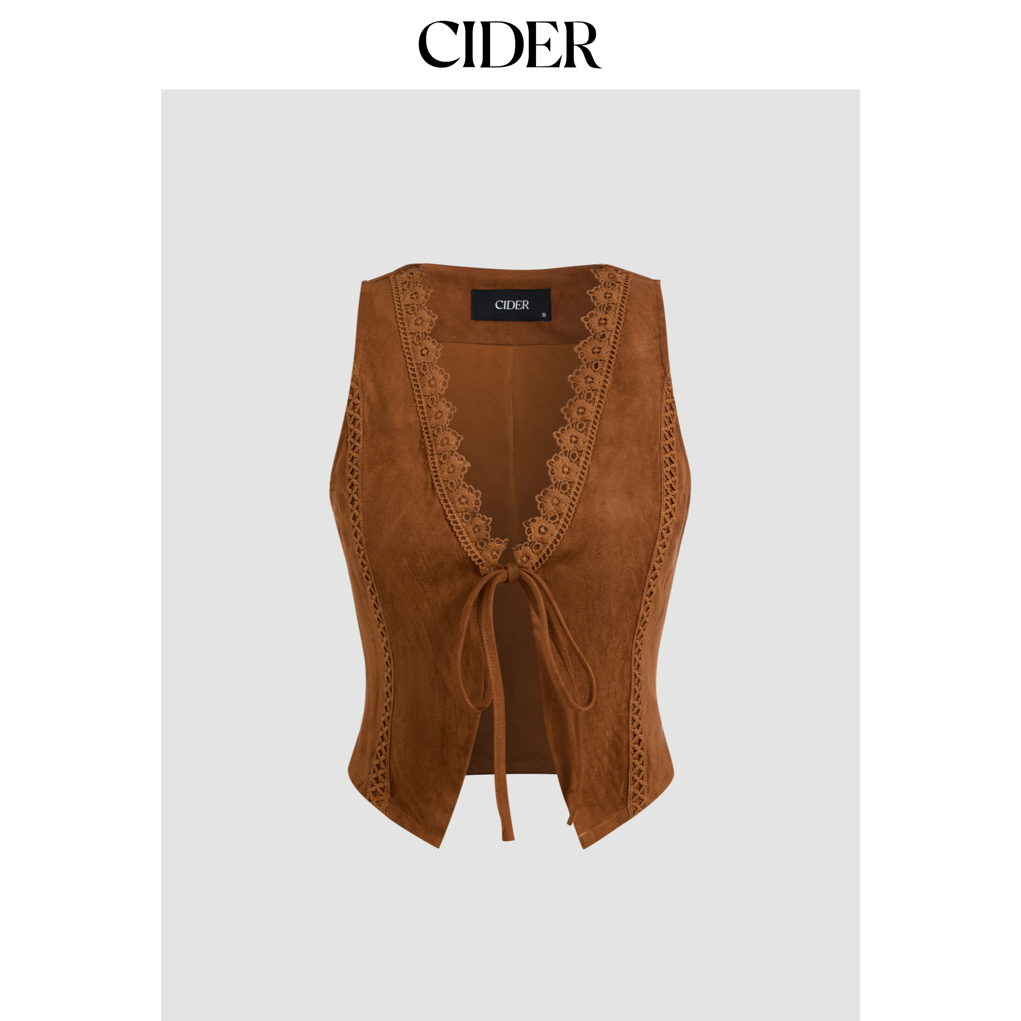 【明星同款】CIDER叠穿麂皮V领蕾丝饰边外穿内搭马甲113812899