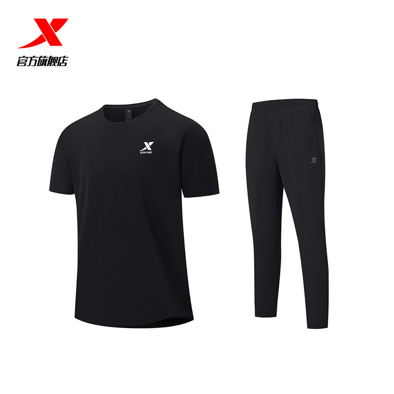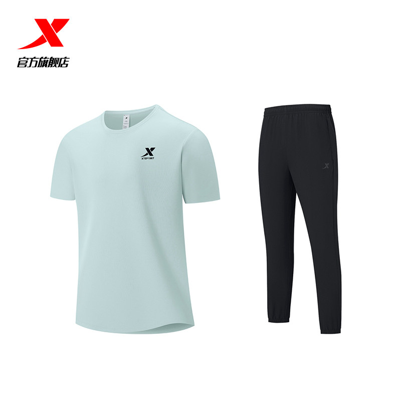 特步运动速干套装男短袖T恤长裤夏季新款运动套装爸爸套装运动裤