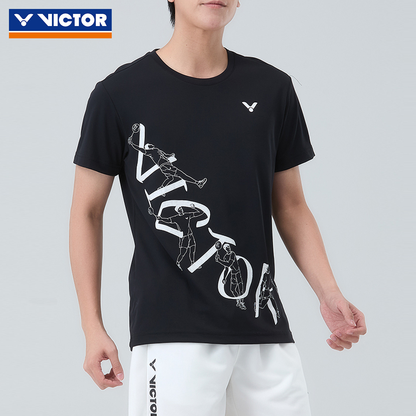 VICTOR胜利羽毛球服威克多男女款抗菌清爽针织运动短袖T恤T-60027