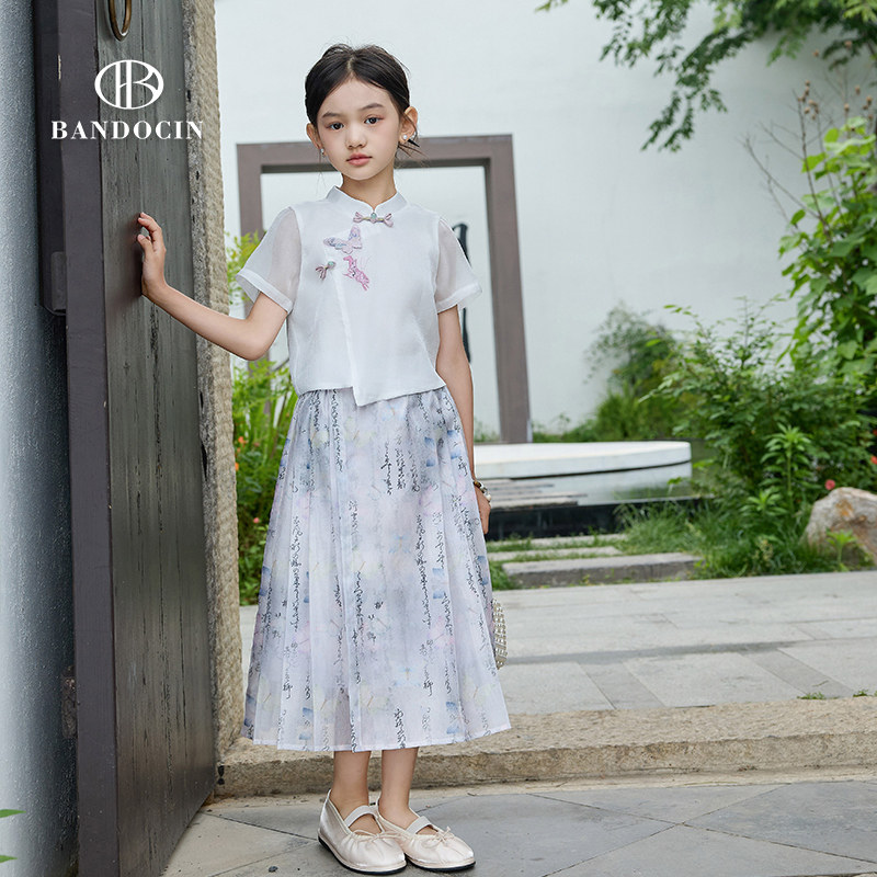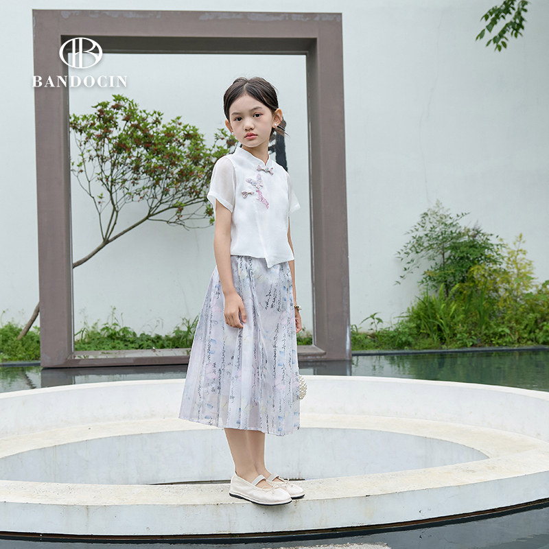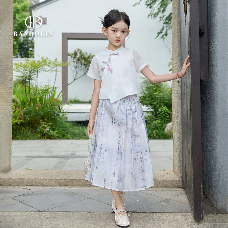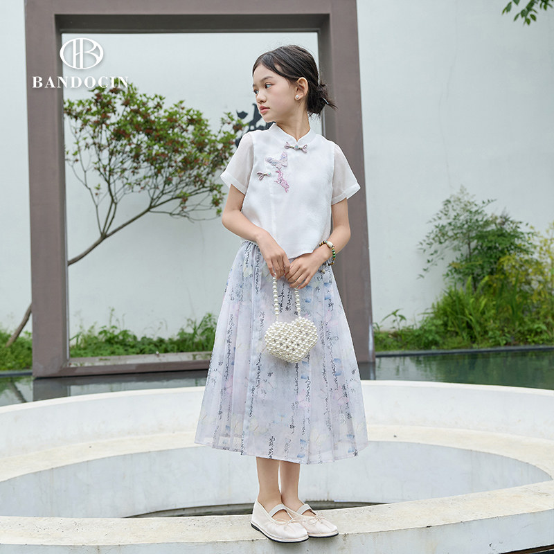 半度闲2024夏季新款女童原创设计新中式套装