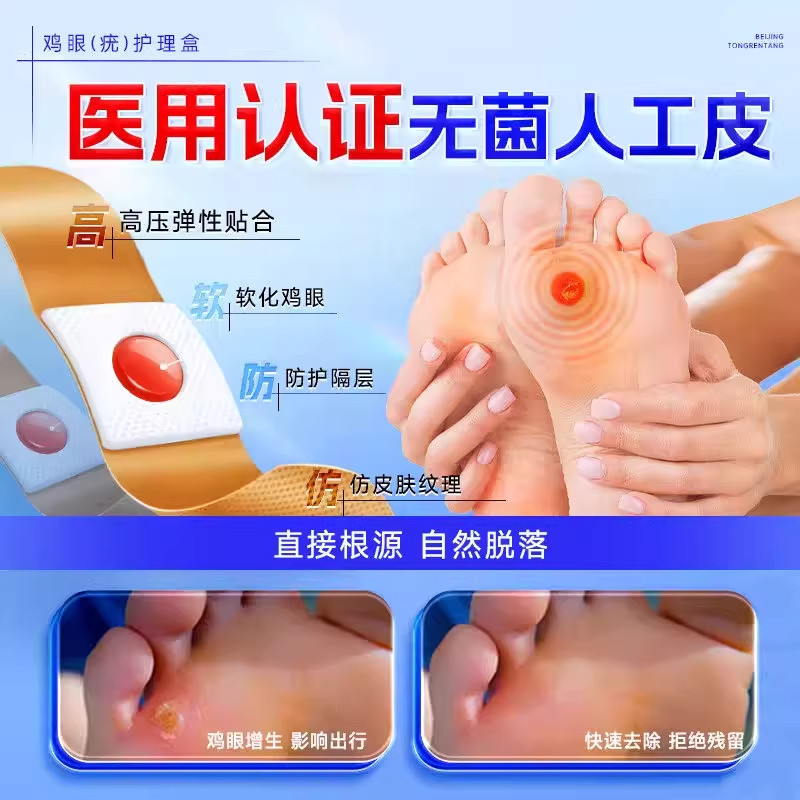北京同仁堂鸡眼贴膏官方正品旗舰店脚底脚后跟去跖疣肉刺除老茧根