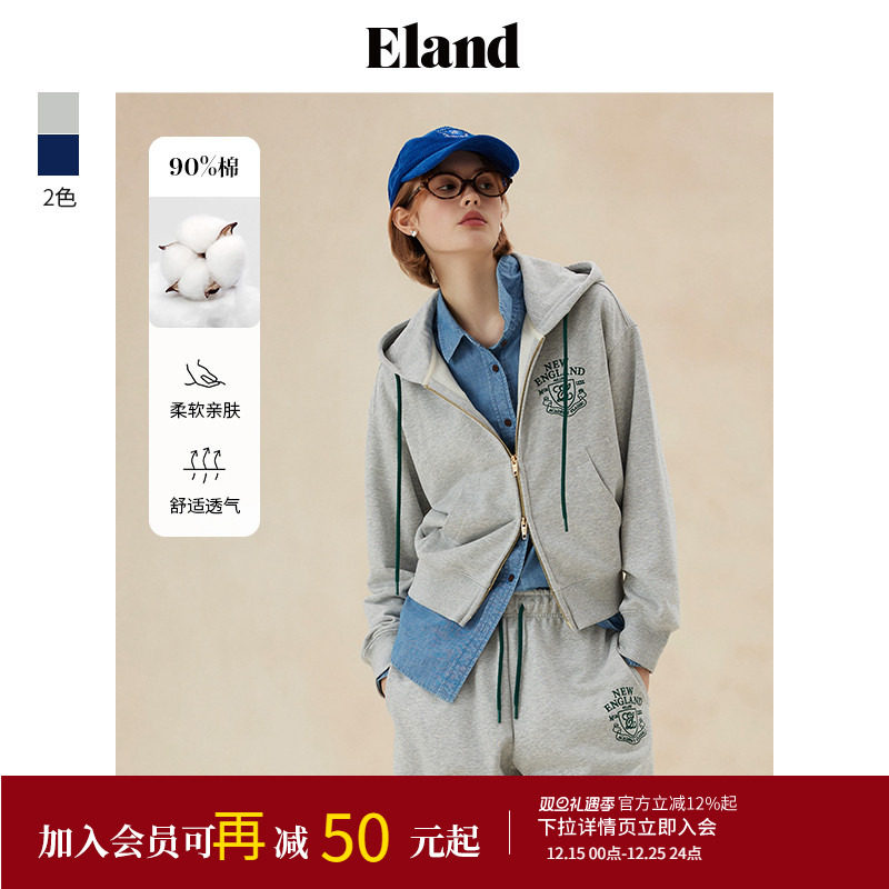 【90%棉】Eland衣恋卫衣女酷拽风连帽露脐短上衣