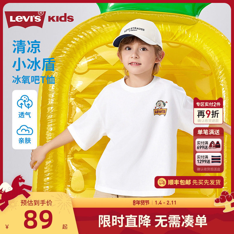 Levis李维斯男女童短袖冰感T恤儿童夏季上衣2026新款男孩半袖夏装