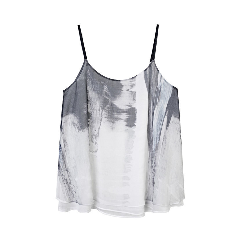 sdeer圣迪奥女装夏装优雅知性文艺印染雪纺吊带S20281506