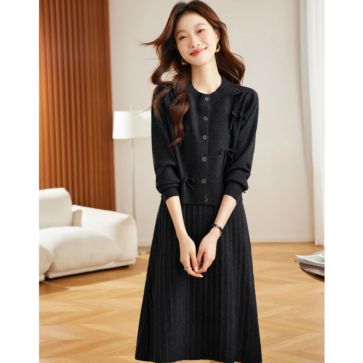 BANANA CICI2026年春季新款荷叶边V领针织衫/连衣裙