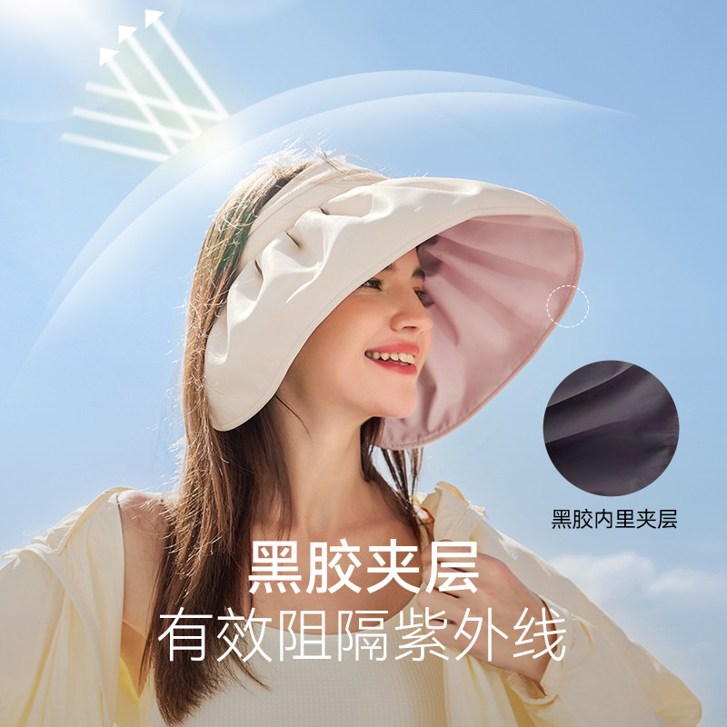 防晒帽女夏季防紫外线贝壳遮阳帽空顶太阳帽子大檐夏天儿童可折叠