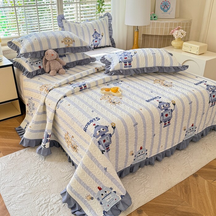 全棉夹棉床褥床盖榻榻米四件套纯棉单被套单床盖花边款四季通用