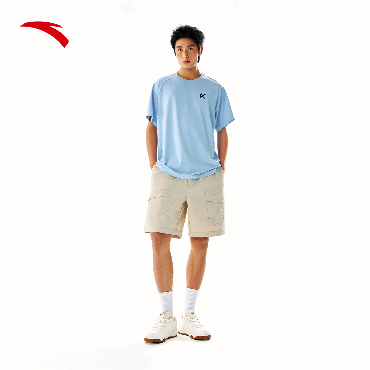 安踏自在裤丨潮流冰丝工装直筒五分裤男夏季休闲短裤子152628501