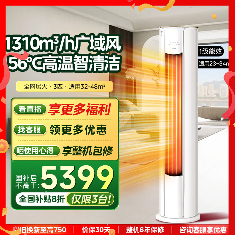【政府补贴】TCL空调大3匹柜机柔风新一级自清洁冷暖变频立式