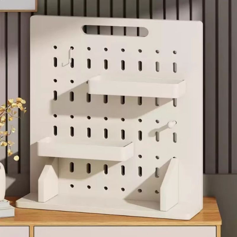 桌面洞洞板置物架奶油风可立式书桌办公桌隔板挡板收纳展示架挂钩