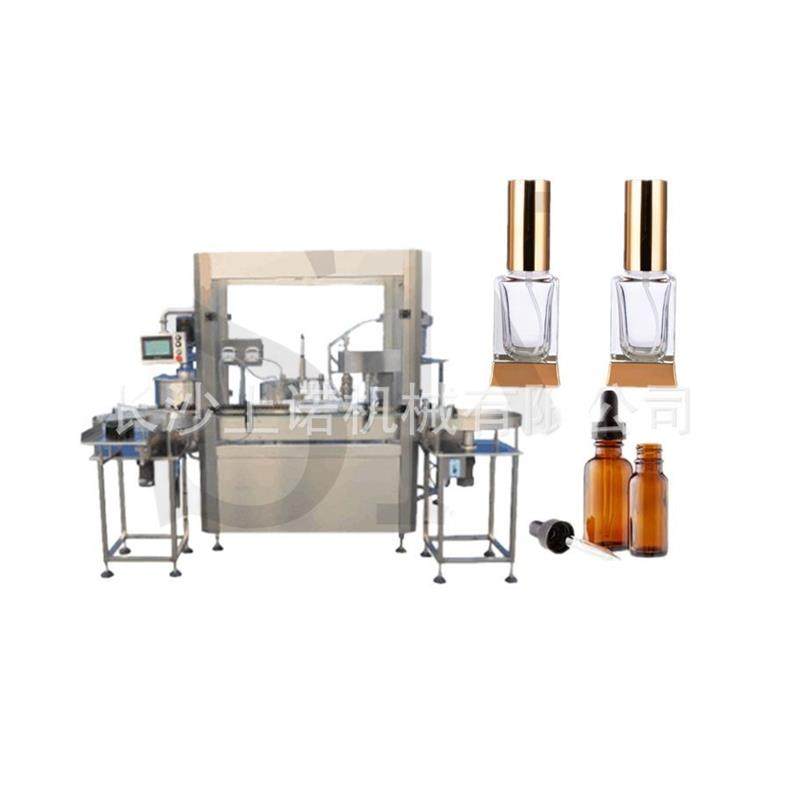 香水化妆品全自动八头灌装压盖机 脚气喷剂花露水液体罐装生产线