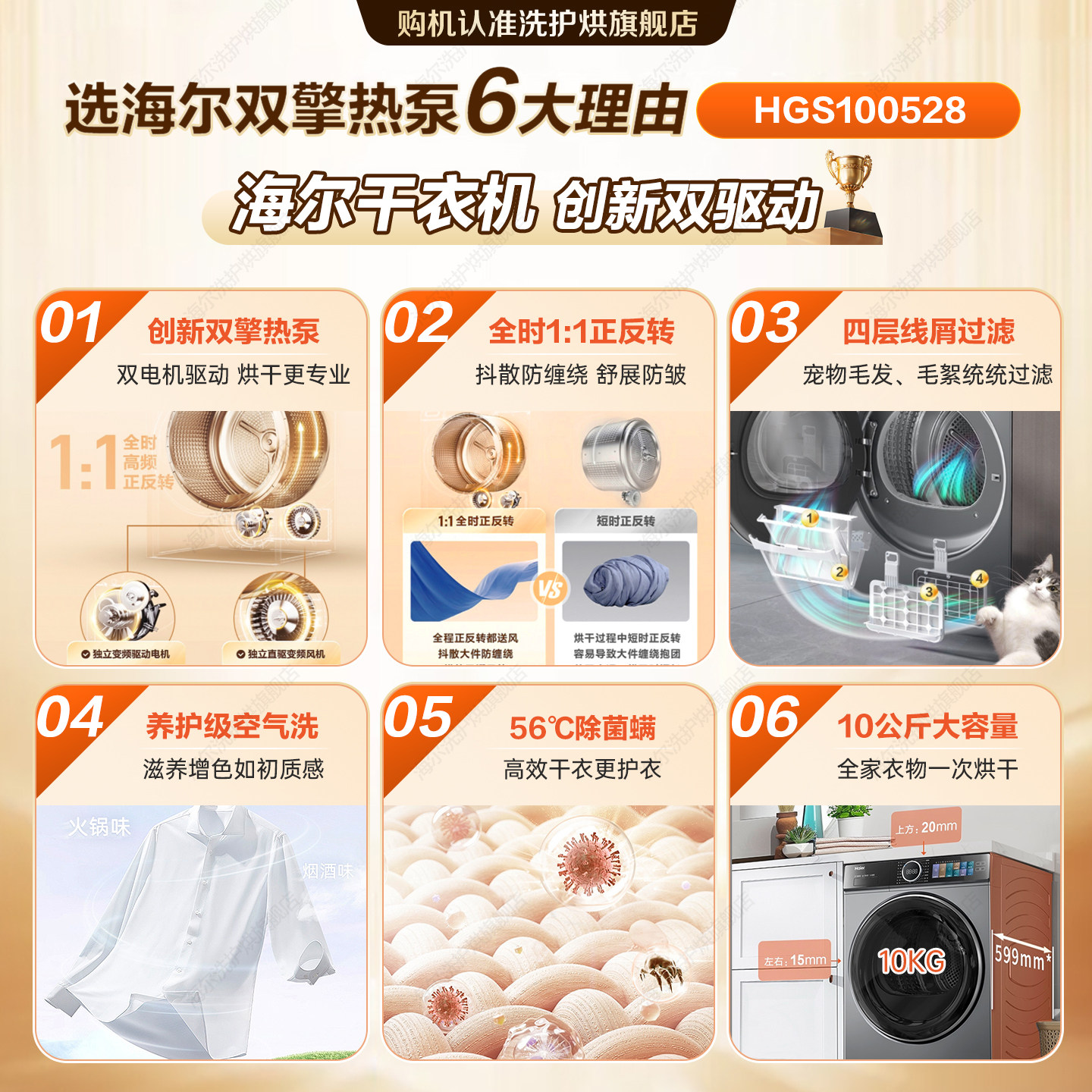 [云溪4.0]海尔热泵烘干机77E家用10公斤干衣机双擎变频官方旗舰店