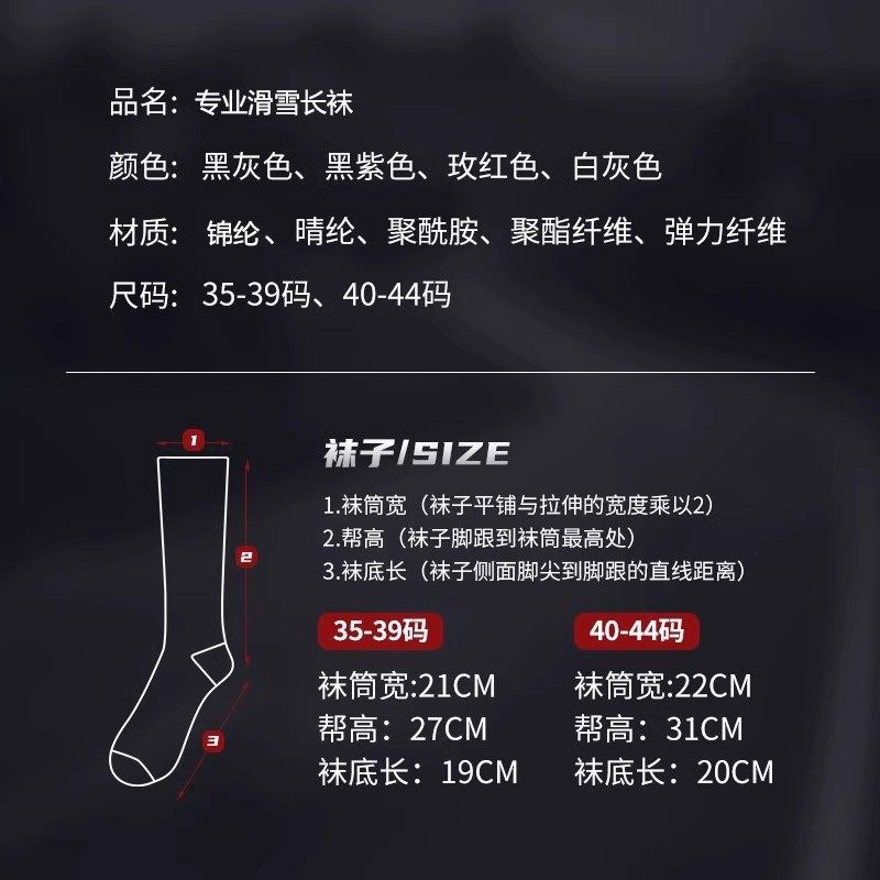 滑雪袜女速干秋冬加厚耐磨单板雪地袜保暖男羊毛运动袜子户外登山