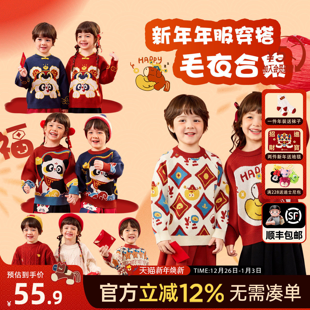 [骏马福裳]齐齐熊男童毛衣开衫冬装新年红色加厚宝宝毛线外套上衣