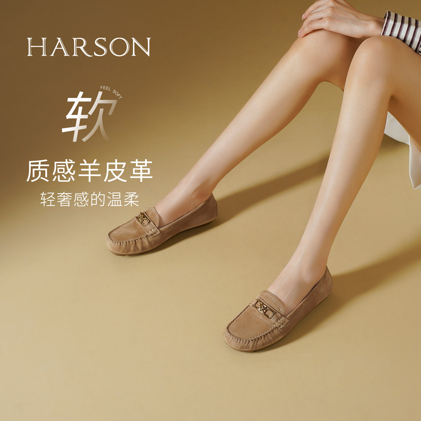 哈森平底乐福鞋女秋季新款软底通勤一脚蹬绒面单鞋豆豆鞋HL249402
