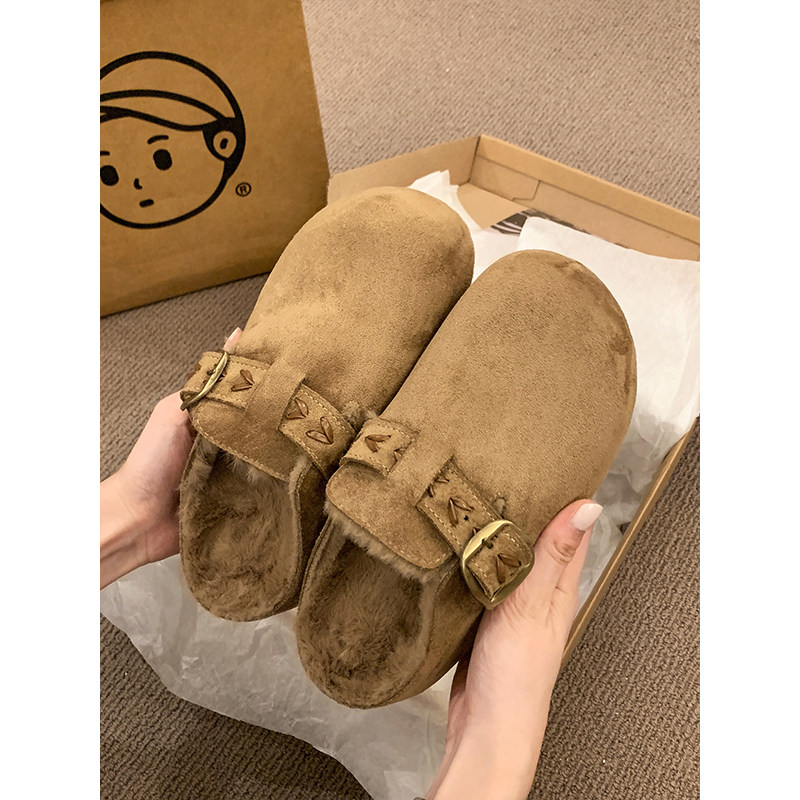 厚底包头半拖毛毛鞋女加绒豆豆勃肯鞋2025新款冬季鞋子一脚蹬棉拖