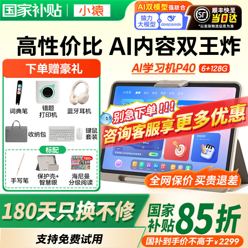 【咨询国补更优惠】小猿学习机P40官方旗舰猿辅导AI学习平板大屏护眼智能学练机早教到高中全科辅导家教机