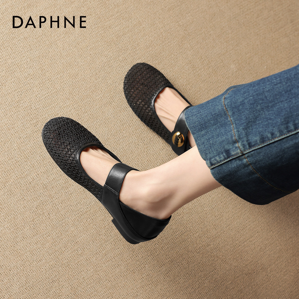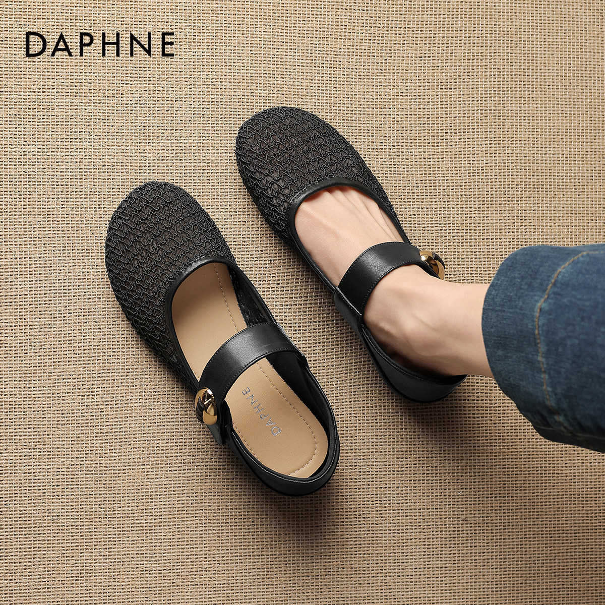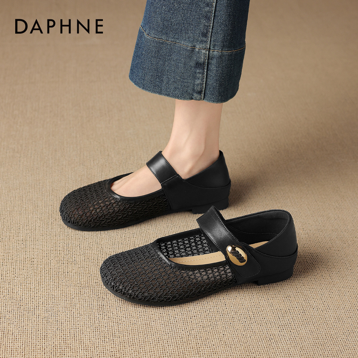 达芙妮镂空单鞋女2026新款夏法式平底编织软底玛丽珍女鞋包头凉鞋