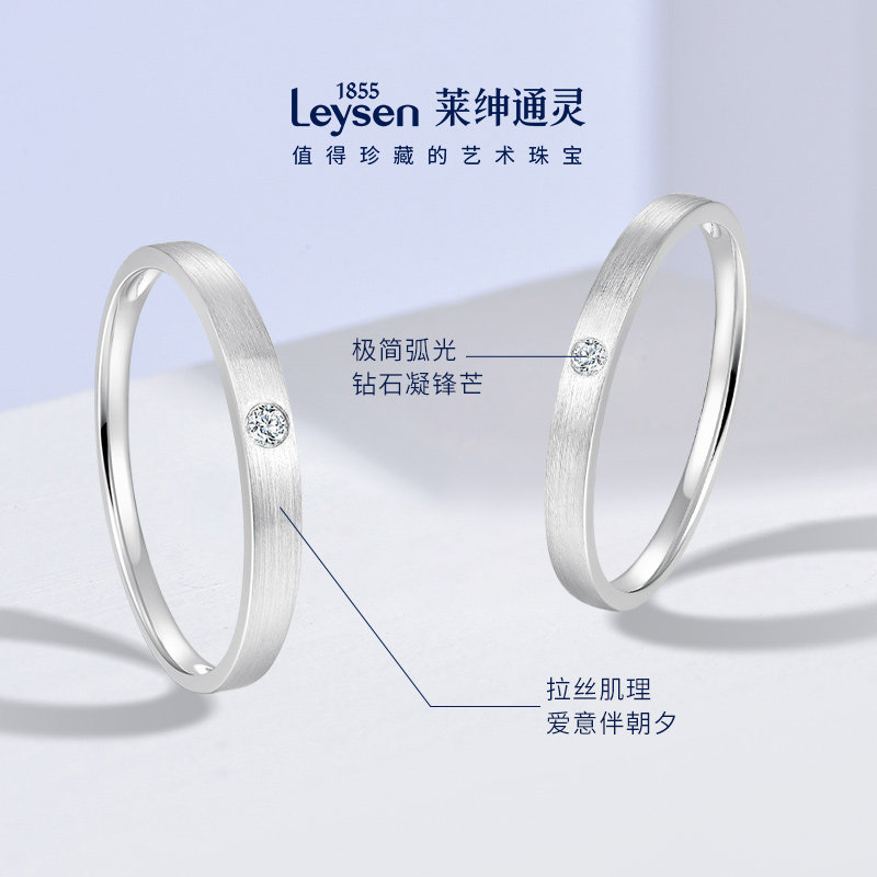 【新品】莱绅通灵 天生一对系列简爱 铂金pt950钻石对戒男女戒指
