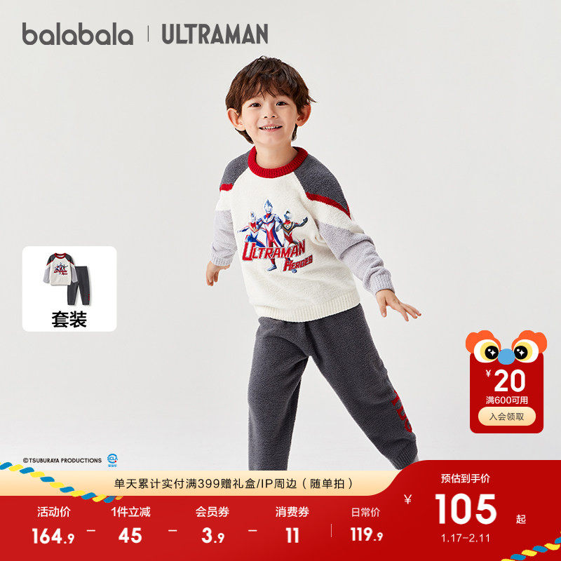 【奥特曼IP】巴拉巴拉儿童家居服套装冬季半边绒男童睡衣保暖时尚