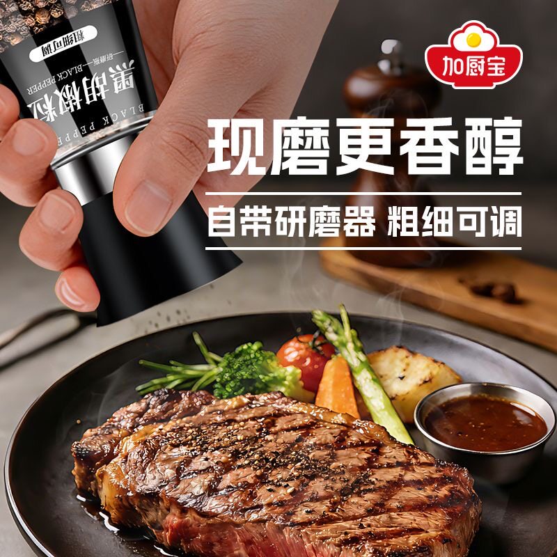 加厨宝黑胡椒粒白胡椒粒40g家用烹饪牛排沙拉研磨瓶粗细可调